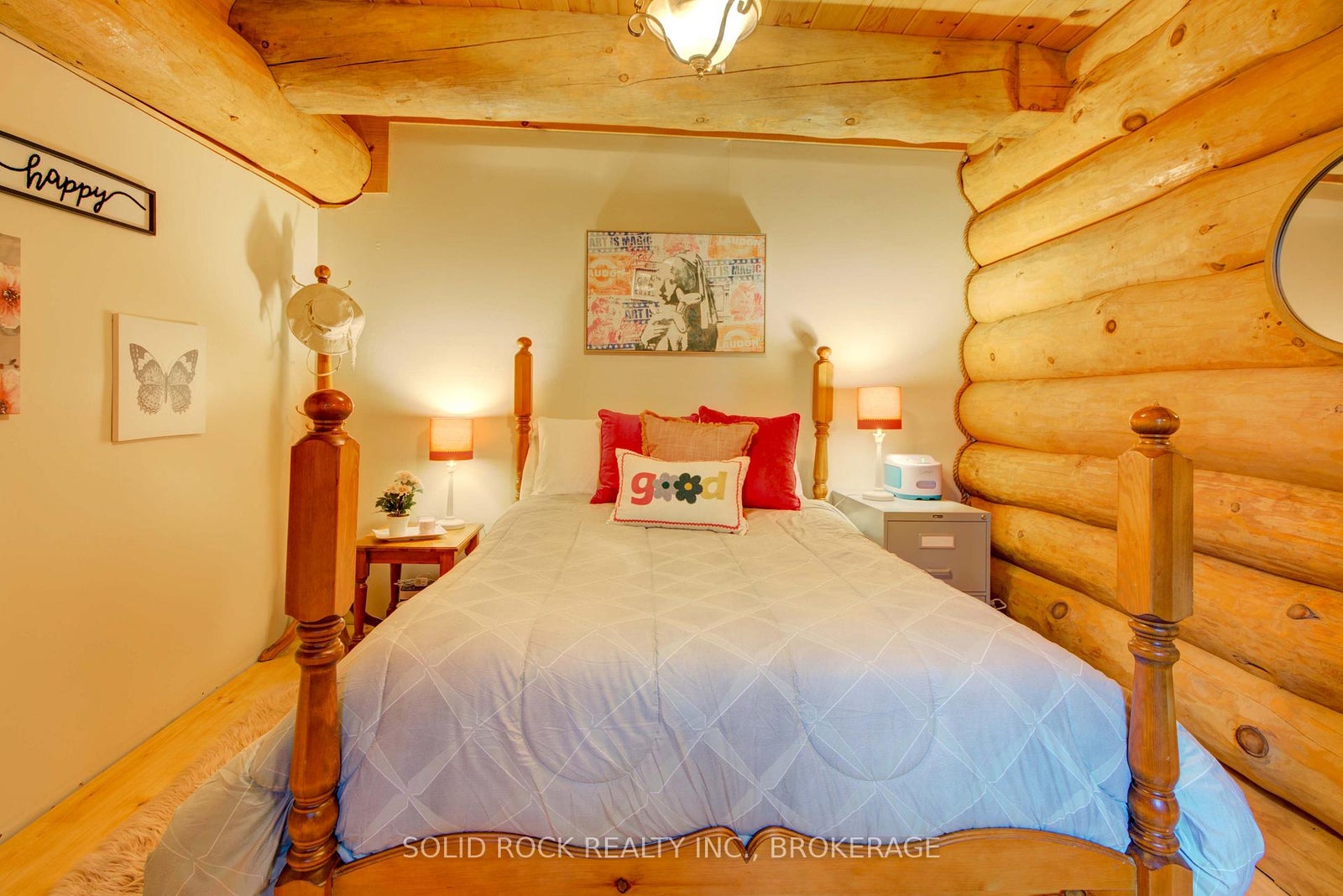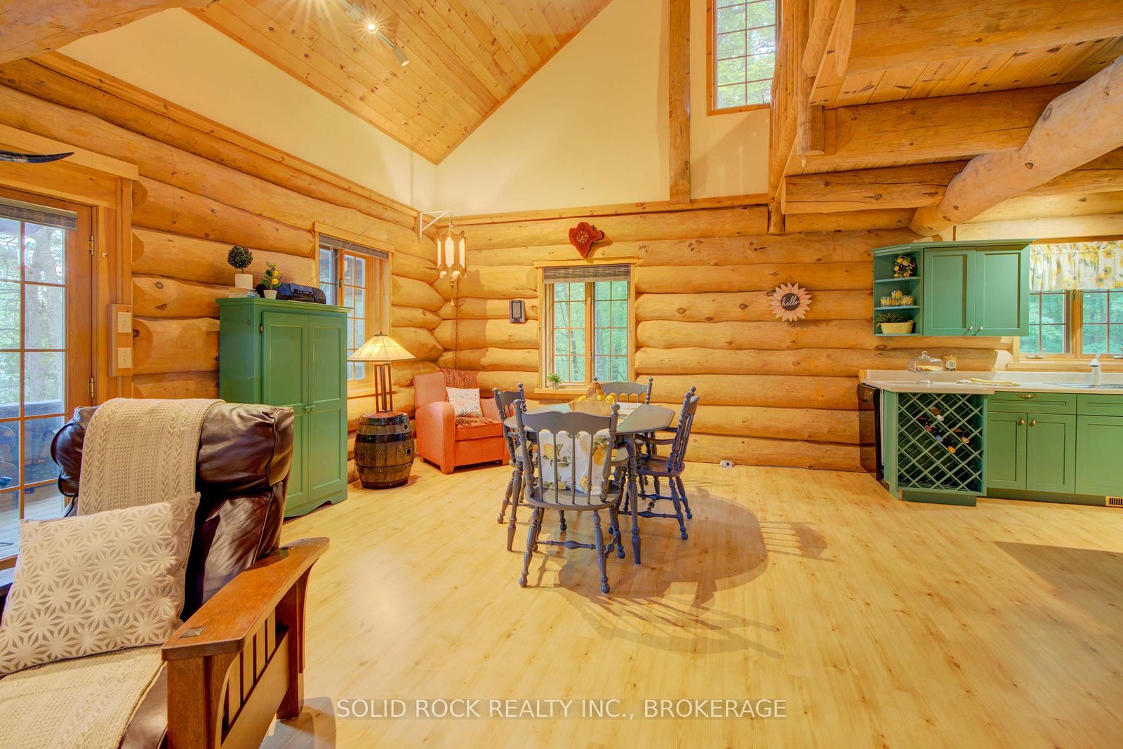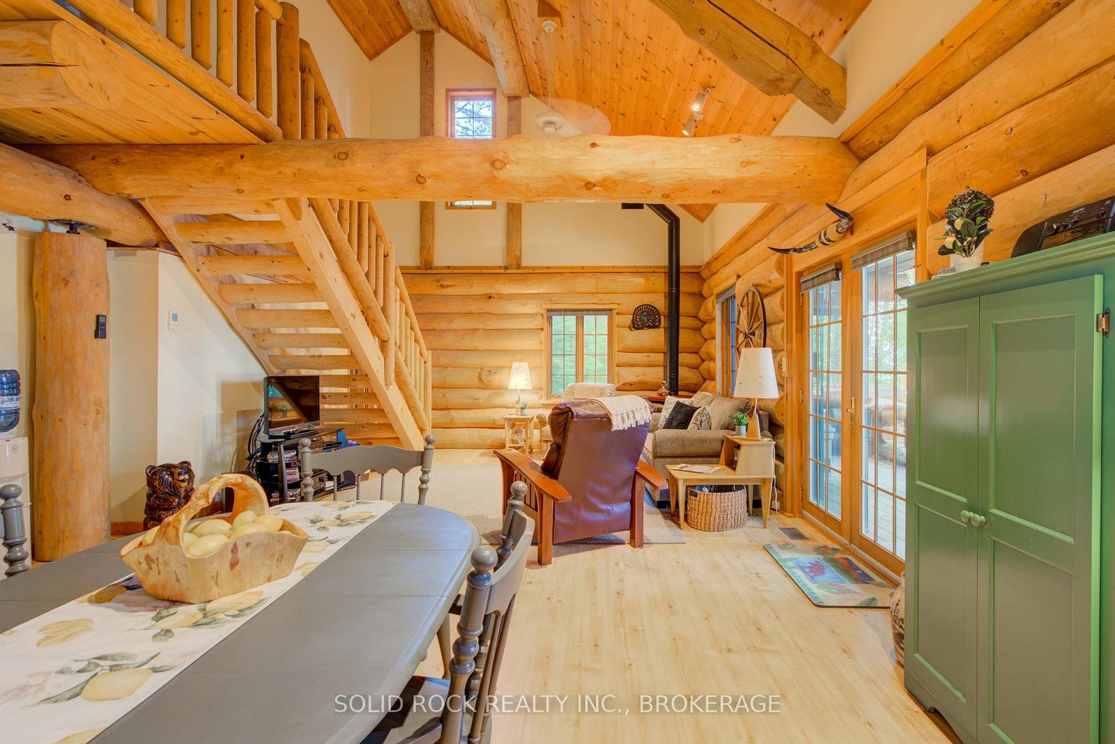 Welcome to your dream getaway on the tranquil shores of beautiful, clean, Big Gull Lake. This meticulously crafted 3-bedroom, 2 full bathroom, full scribe, pine log/board & batten, winterized home, (with a metal roof) built in 1999, sits on a private 1.49-acre lot with over 200 feet of natural shoreline, offering peace, privacy and endless waterfront enjoyment. The one of a kind home features warm wood finishes (nine logs high then its drywall ) with an inviting open-concept layout, large windows that invite the natural light in and breathtaking views of the Lake. The main living space is perfect for relaxing or entertaining with the primary bedroom and main floor bathroom located right off the family room. The modern kitchen adds a " punch of the past" with the old fashion look of the cast iron wood burning stove, but with the modern convenience of electricity! Climb the custom built log stairs to the 2 bedrooms and second full bathroom- all overlooking the main floor with a view of the incredible architecture of the interior of the home. The lower level is reached by outside entry at the bottom level - this is where you will find the laundry area, utility room and additional storage. There is a detached, double car garage/workshop (with a metal roof) equipped with 200 amp service, ideal for storing toys, tackling projects, or creating a hobby space. Phenomenal fishing of northern pike, walleye and largemouth bass. Whether you're boating, swimming, or simply soaking in the quiet from your deck, every part of this property is designed for lakeside living at its best. This is more than just a cottage, it's a lifestyle. Whether you're looking for a year-round home or a seasonal escape, this Big Gull Lake gem is ready to welcome you. Don't miss the opportunity to own your own piece of paradise! Located 3.5hrs east of Toronto, 2.5hrs West of Ottawa & 2hrs north of Kingston. PLEASE NOTE: fire/civic address is 2091 Gull Lake Estates Lane.