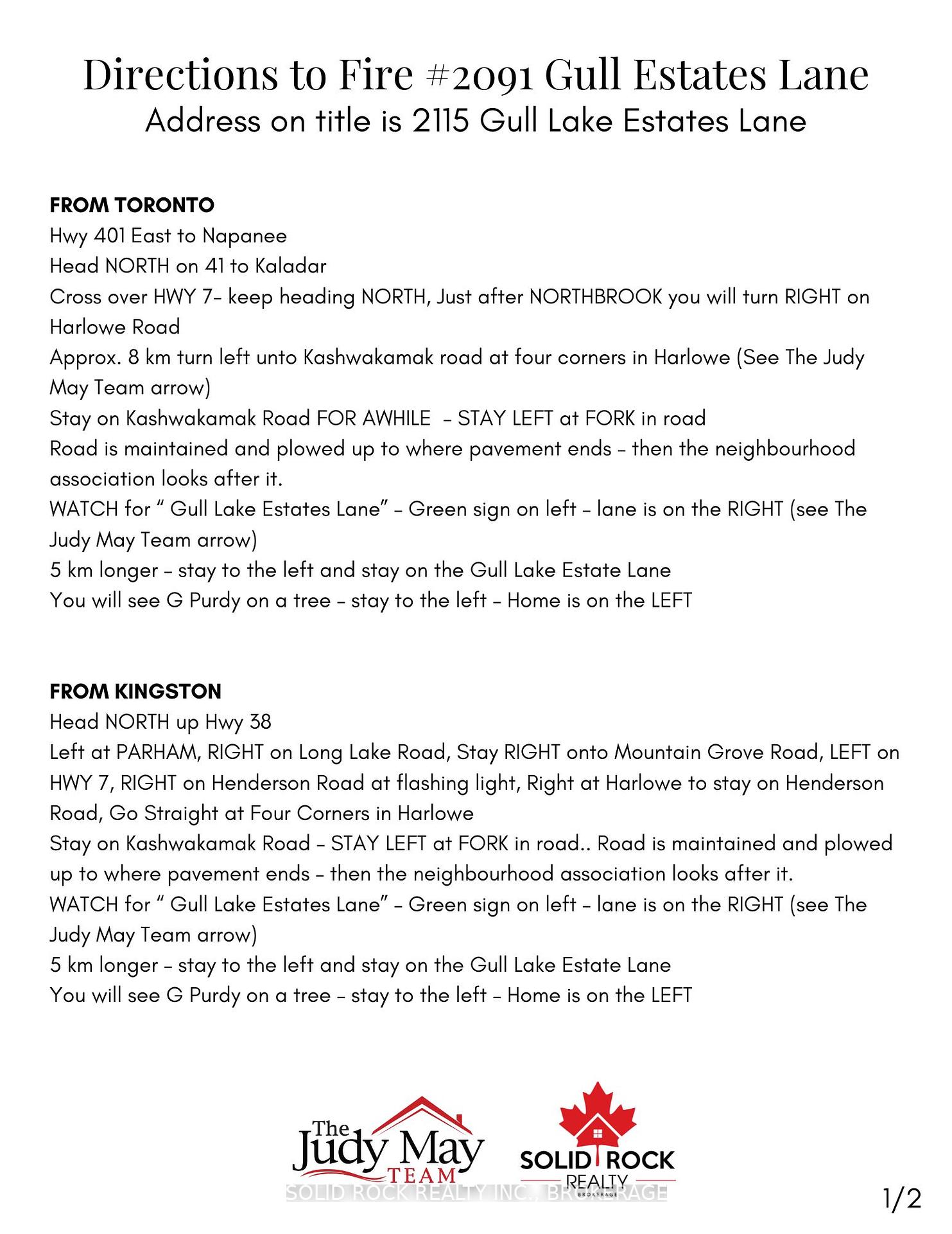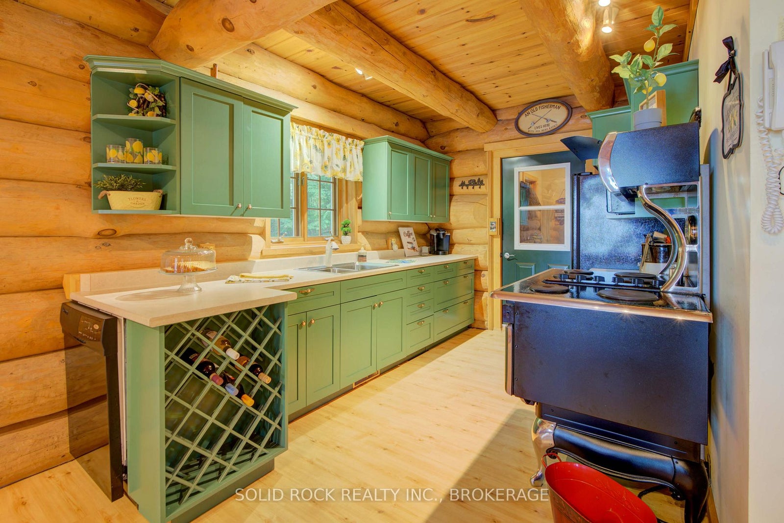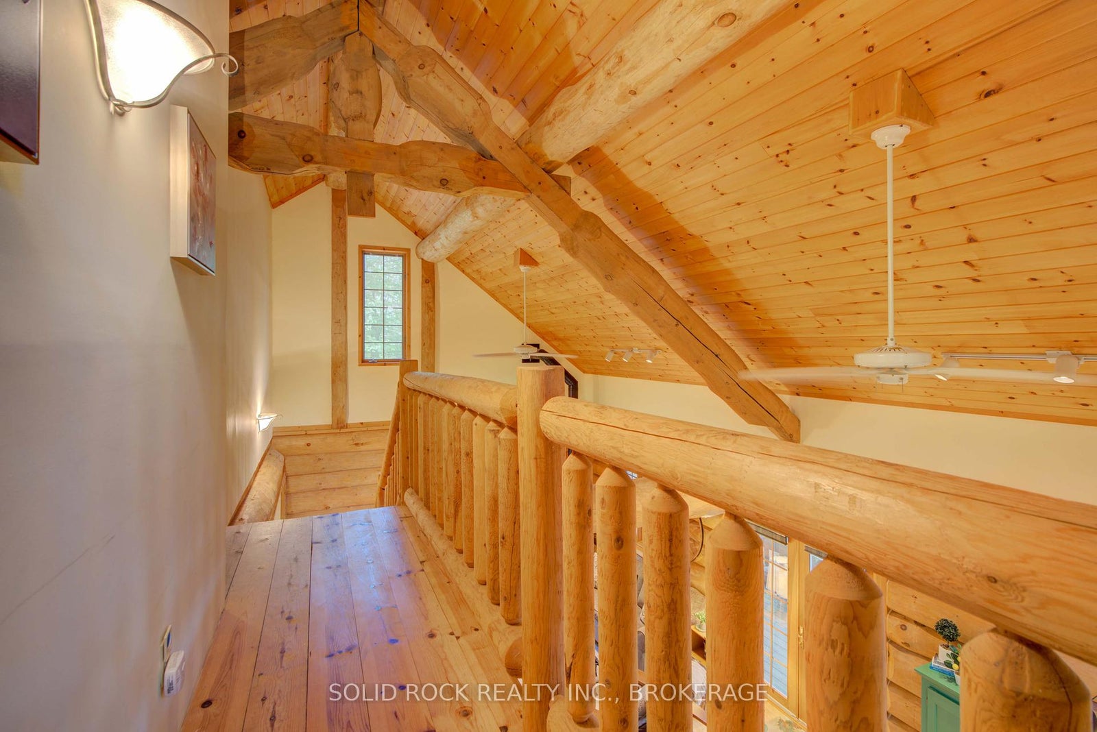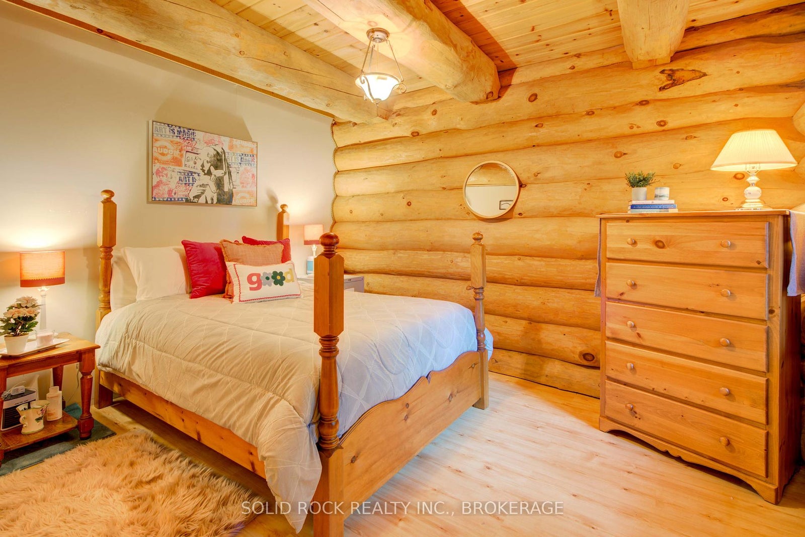Welcome to your dream getaway on the tranquil shores of beautiful, clean, Big Gull Lake. This meticulously crafted 3-bedroom, 2 full bathroom, full scribe, pine log/board & batten, winterized home, (with a metal roof) built in 1999, sits on a private 1.49-acre lot with over 200 feet of natural shoreline, offering peace, privacy and endless waterfront enjoyment. The one of a kind home features warm wood finishes (nine logs high then its drywall ) with an inviting open-concept layout, large windows that invite the natural light in and breathtaking views of the Lake. The main living space is perfect for relaxing or entertaining with the primary bedroom and main floor bathroom located right off the family room. The modern kitchen adds a " punch of the past" with the old fashion look of the cast iron wood burning stove, but with the modern convenience of electricity! Climb the custom built log stairs to the 2 bedrooms and second full bathroom- all overlooking the main floor with a view of the incredible architecture of the interior of the home. The lower level is reached by outside entry at the bottom level - this is where you will find the laundry area, utility room and additional storage. There is a detached, double car garage/workshop (with a metal roof) equipped with 200 amp service, ideal for storing toys, tackling projects, or creating a hobby space. Phenomenal fishing of northern pike, walleye and largemouth bass. Whether you're boating, swimming, or simply soaking in the quiet from your deck, every part of this property is designed for lakeside living at its best. This is more than just a cottage, it's a lifestyle. Whether you're looking for a year-round home or a seasonal escape, this Big Gull Lake gem is ready to welcome you. Don't miss the opportunity to own your own piece of paradise! Located 3.5hrs east of Toronto, 2.5hrs West of Ottawa & 2hrs north of Kingston. PLEASE NOTE: fire/civic address is 2091 Gull Lake Estates Lane.